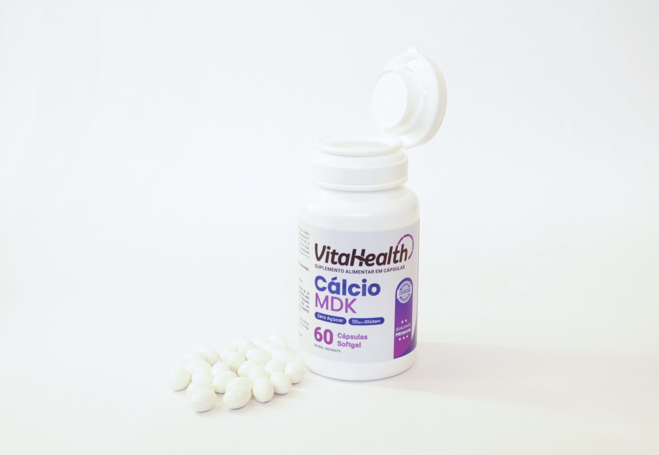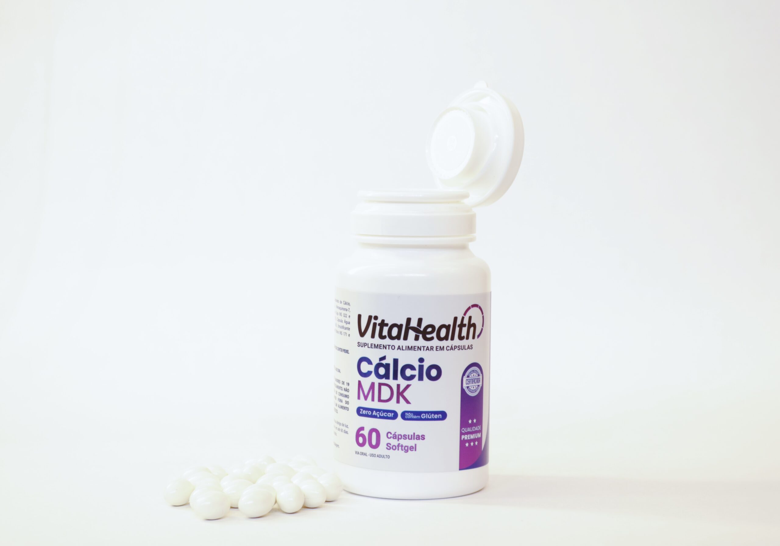Conheça o VitaHealth Cálcio MDK, com Cálcio, Magnésio, Vitamina D e Vitamina K.